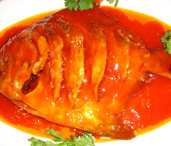 7、把炸好的鯧魚放入有湯汁的鍋中,翻炒幾下盛入盤中,把汁液淋在鯧魚上即可。