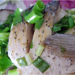 蒸魚之前首先得處理好魚肉哦,然后用鹽或者是醬油涂抹魚的身體,腌制10分鐘左右就可以下鍋開蒸了。做清蒸草魚,記住要放入姜片哦,不然有腥味,也可以淋上幾滴料酒。草魚蒸好之后,來個(gè)響油哦。鍋里倒入油,燒紅之后淋在魚上面,會(huì)有茲茲的聲響呢,大家也可以嘗試一下的。