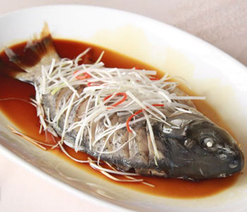 做草魚放姜的時機(jī)也是有講究的。烹制魚時如果過早地放入生姜,魚體浸出液中的蛋白質(zhì)會阻礙生姜的除腥作用。如果等到魚中的蛋白質(zhì)凝固了在添加生姜,就可以達(dá)到徹底去腥的目的。也就是說要先把魚烹煮一會再放姜,其效果特別好。
