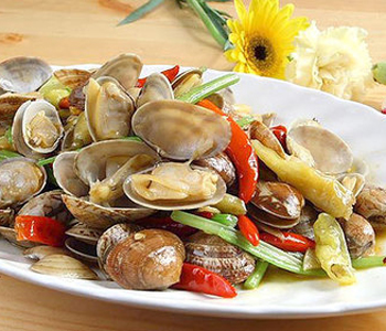 做法:辣椒切片,蛤蜊氽燙,取出蛤蜊肉;蘆筍切段氽燙,入開水沖涼;起鍋,先炒蘆筍,再放入蛤蜊肉同炒,最后放入調(diào)味料及辣椒炒勻。