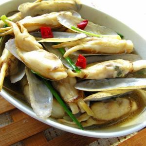 蟶子味道鮮美,形態(tài)美觀,古人曾贊譽(yù)它“美人種子市蟶秧”,將蟶子比喻成美人種子是不過(guò)分的,因?yàn)樗献鳛槊廊说乃袟l件:苗條、白皙、柔弱??偢杏X(jué)吃多了也會(huì)變美。蟶子的做法很多,以下介紹一種簡(jiǎn)單又美味的做法。