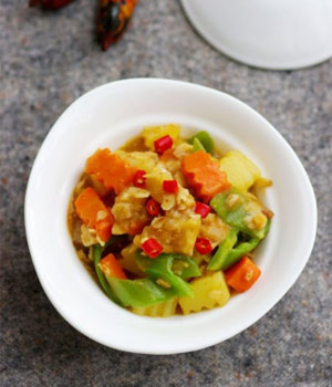 食材:鱈魚200克,茄子200克,蒜頭8瓣,姜片8克,蔥段8克,蒜蓉8克,朝天椒5克。