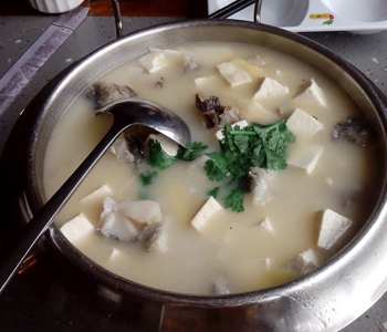 食材:鱈魚、豆腐、蔥、姜、香菜、洋蔥。