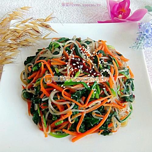 1.粉絲泡發(fā),菠菜折好洗凈,胡蘿卜洗凈