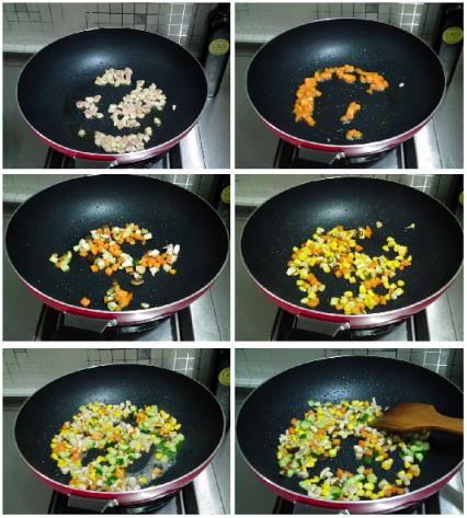 叨嘮 玉米粒選用熟的水果玉米,所有食材切成和玉米粒大小的小丁,胡蘿卜先用油煸炒至塌軟,寶寶更容易吸收胡蘿卜的營養(yǎng)。
