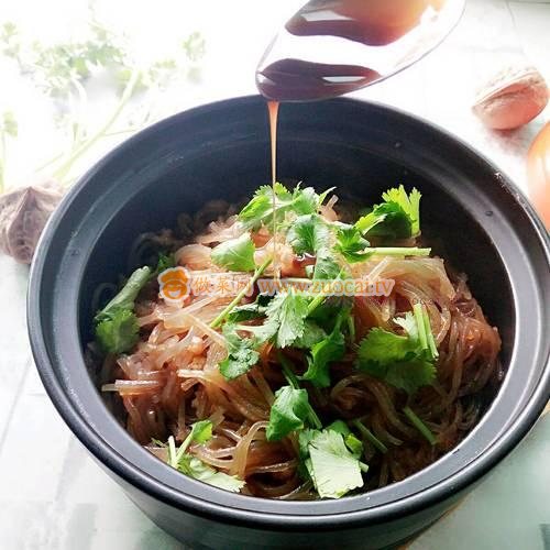 1.冷水燒開后,粉絲上鍋加蓋蒸10分鐘。