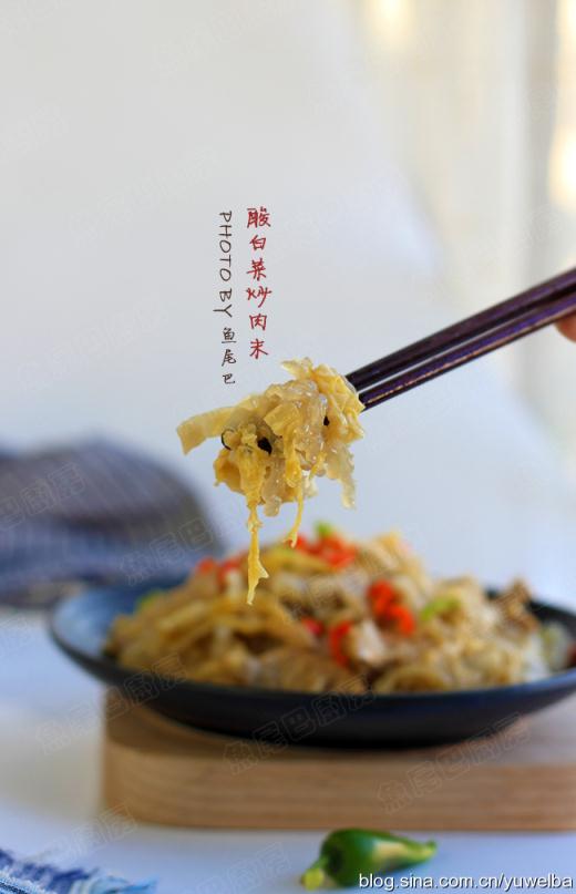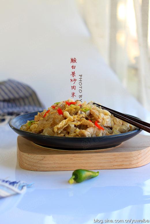 酸白菜 250克 豬肉 150克(其實(shí)五花肉炒會更好吃)