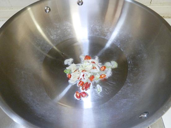 1.蔥姜蒜、紅辣椒爆香。