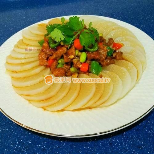 8.關(guān)火~將炒好的肉粒鏟起放在蘿卜中間
