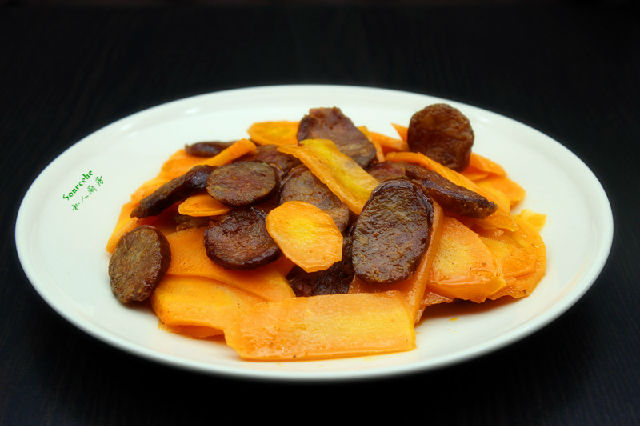 1.主食材:臘腸150克、胡蘿卜200克