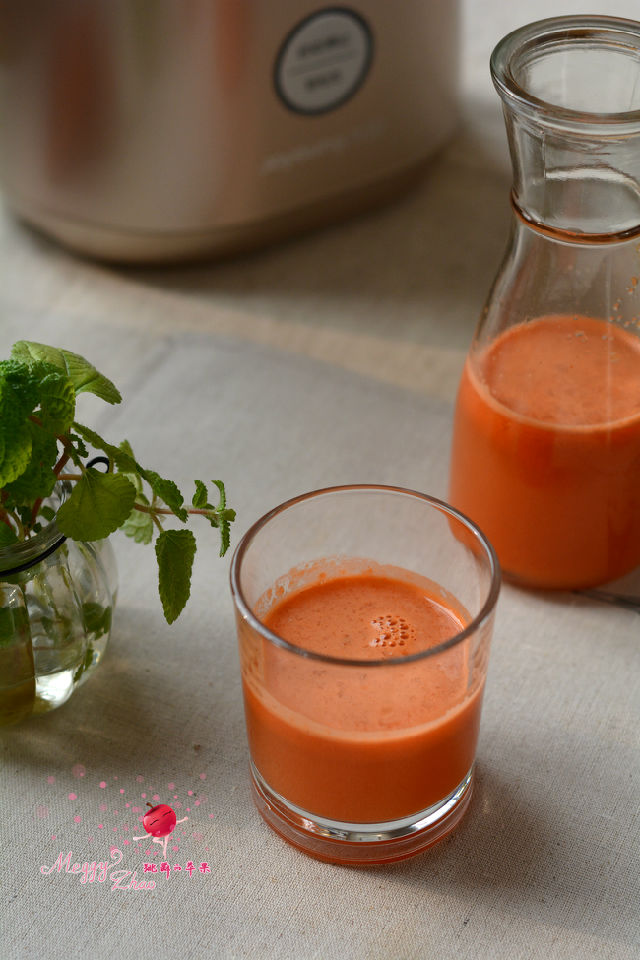 把胡蘿卜和蘋果二者結(jié)合起來,既取了胡蘿卜漂亮的顏色,又取蘋果的酸甜口感,將胡蘿卜的特殊香氣掩蓋住,小孩子也能咕咚咕咚喝上一大杯。而蘋果和胡蘿卜中的果糖,也更適合老年人,而且還有清腸、防便秘的效果。