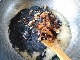 4.最小火,加入黑芝麻,核桃仁,棗。拌勻。