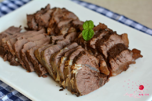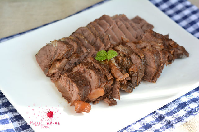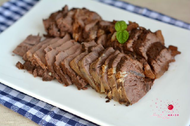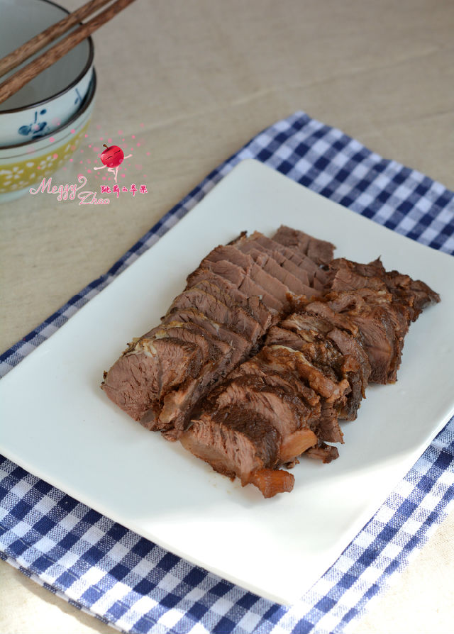 不想費時間還想吃有滋有味兒的好肉。我用了電飯煲,用煲湯的功能慢慢煲著。頭天晚上放進(jìn)飯煲里,用煲湯的功能定時一個半小時,然后就睡大覺去吧!時間到了,飯煲有自動保溫的功能。第二天一早起來,還是熱乎乎的。而且這肉在湯里泡了一晚上,這香味、鹽味全吸進(jìn)肉里了??粗?,那味兒可不淡,而且肉也很爛乎。我都為我這個懶辦法高興了一把。燉、燜、醬,我分不清楚。因為最后是大塊牛肉切片吃的,所以我就權(quán)且把它叫鹵牛肉吧。