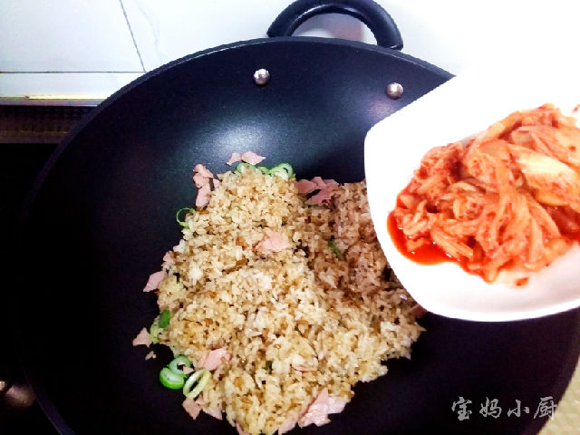 1 這個(gè)炒飯由于加了辣白菜就沒加鹽,也可以依據(jù)個(gè)人口味調(diào)整