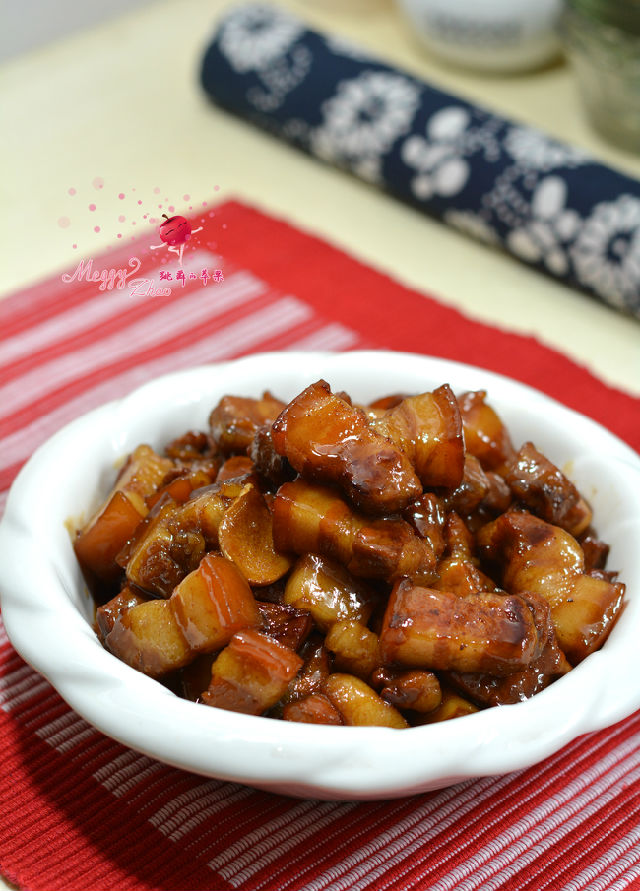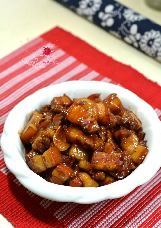 另外不放一滴醬油,也能讓紅燒肉顏色金紅,而且湯汁濃稠掛在肉塊上面,特別的誘人。