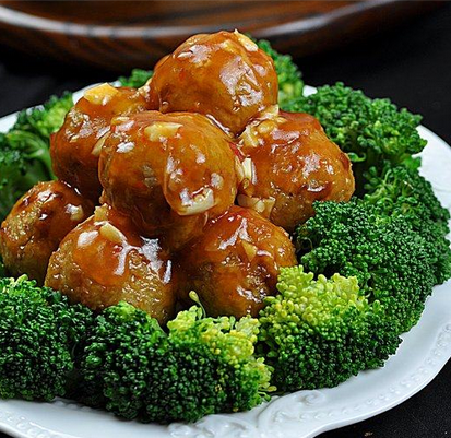 19.西蘭花擺盤,將丸子擺放中間即可。