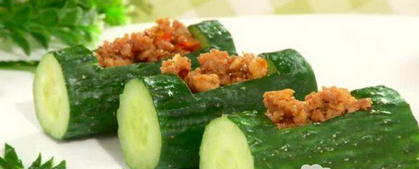 4.再將炒好的豬肉泥裝入黃瓜凹槽內,就大功告成啦!