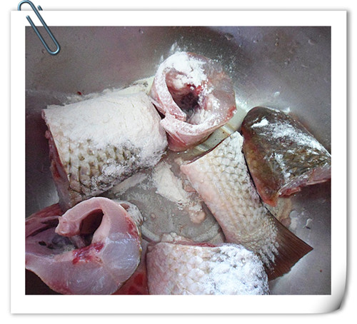 梭魚收拾干凈,切塊,沾干面粉。