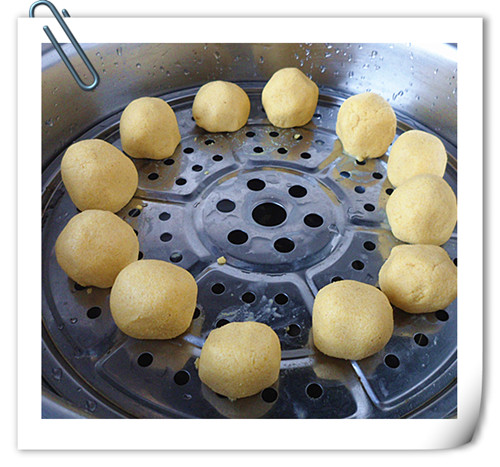 燙好的玉米面,做成小餑餑蒸熟。