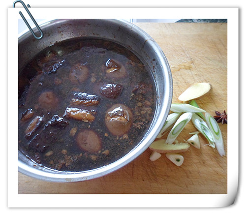 準(zhǔn)備好蔥姜蒜,大料。燉肉的肉湯。
