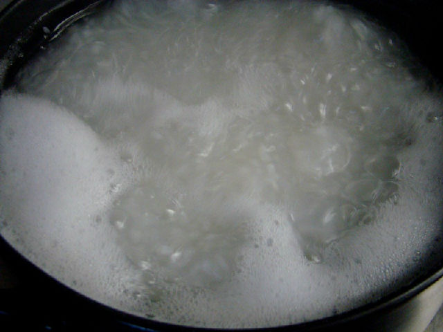 5,加入冷水,用大火燒開煮沸。