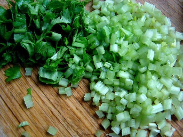 2,小芹菜切小粒。