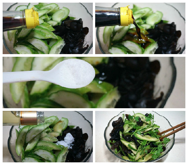 因此木耳是適合全家人食用的良品佳菜。今天這道涼拌木耳做法一點兒都不難。隨手取材的黃瓜切片,再用生抽、香醋、鹽一拌,清脆爽口開胃。因為加了醋,所以泡的時候越長,這味道越足,而且黃瓜片還照樣爽脆脆。