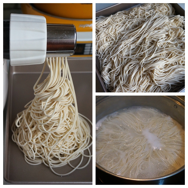 10. 面條全部壓好了,一次可以多壓點(diǎn),吃不了可以放保鮮袋中,入冰箱冷藏保鮮3天,取出來照樣新鮮好吃;