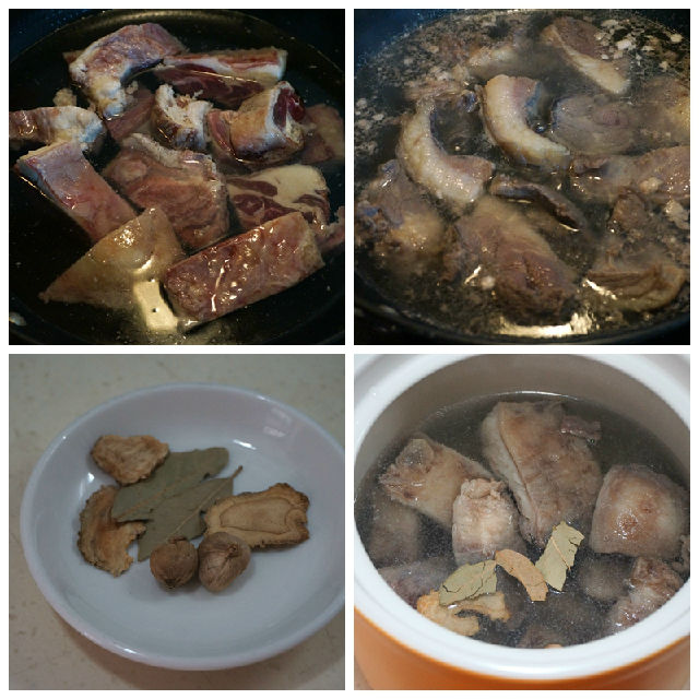1. 解凍的羊肉切成大塊,入涼水鍋,中火煮開;