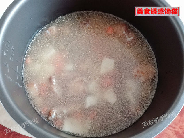 7、放入電飯鍋,加入適量清水(稍高出食材),按下煮飯鍵。