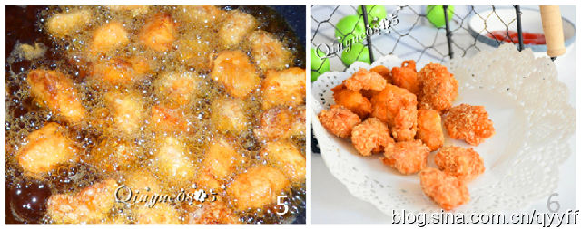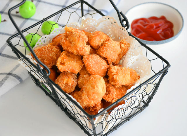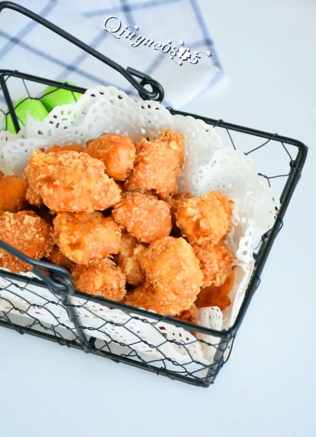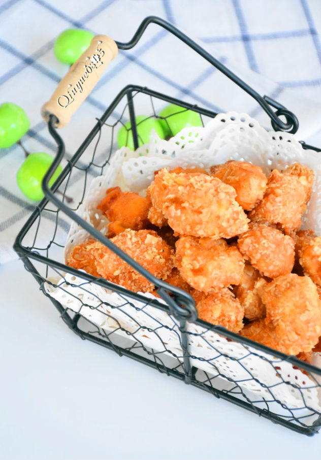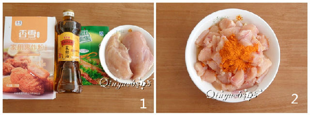 雞米花是由雞脯肉掛糊炸制而成,樣子類似于爆米花。腌料可以根據(jù)您自己的喜好放入