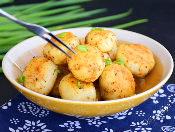 小土豆皮薄色淺,圓溜溜地非??蓯?它的口感細糯可口,無論是煎燉炸都非常好吃。