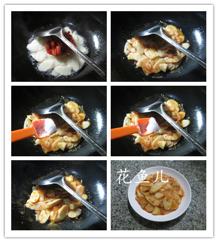 (4)最后,加適量的鹽、加適量味精調(diào)味炒勻,即成。