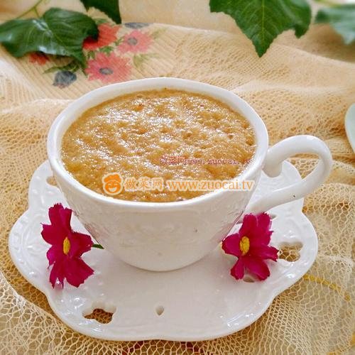 5.炸好的果汁倒入杯子中,可見非常的細膩,有點濃稠,這個不用濾渣的所有的營養(yǎng)都在杯子里。