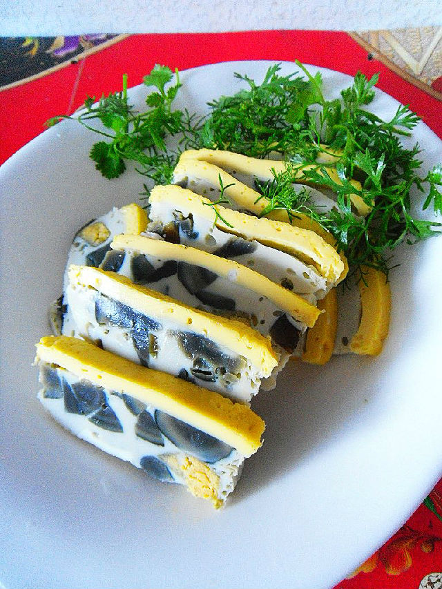 3、松花蛋也可以先蒸5分鐘,使蛋黃凝固后再切。