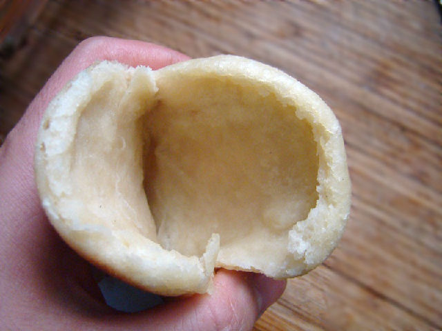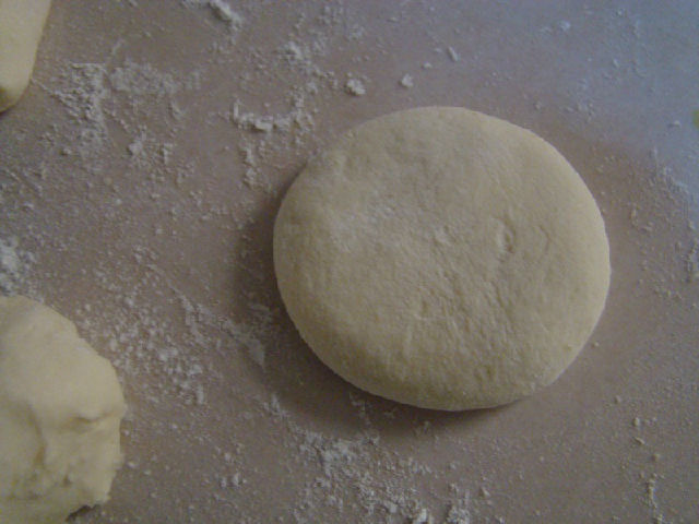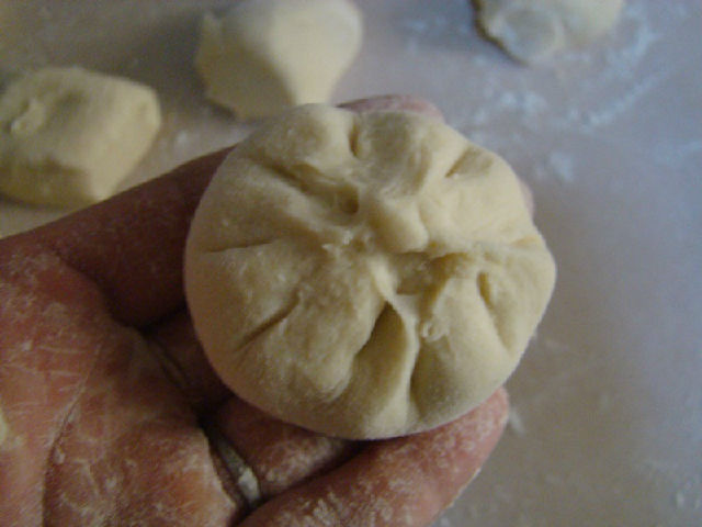 7,收口朝下,輕輕摁扁,生坯就做好了。