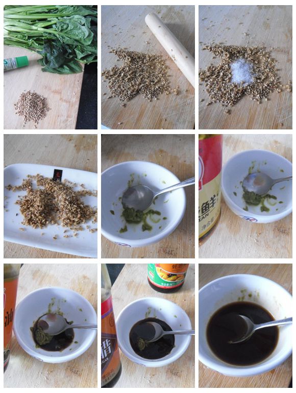 這款菜肴是一道冷盤(pán)素菜,制作方法并不復(fù)雜,主要的過(guò)程是調(diào)味。調(diào)味料中使用了辣根(綠色芥末醬),辣根和菠菜搭配可以說(shuō)是絕配,非常誘人。再加上芝麻的香味,非??煽?。