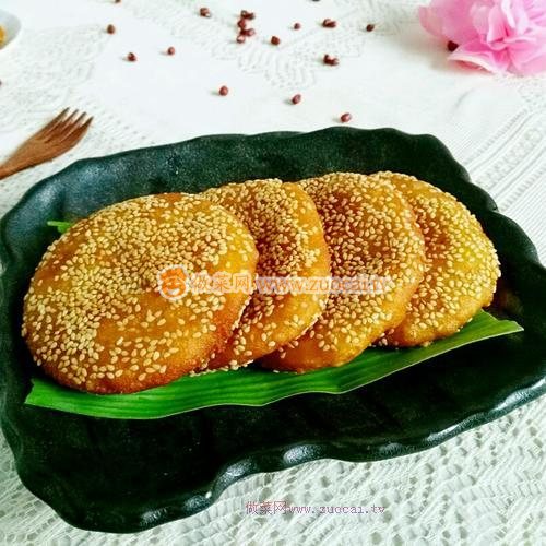 10.餅子放芝麻盤里,兩面沾滿芝麻。然后按實芝麻,防止炸時掉芝麻。
