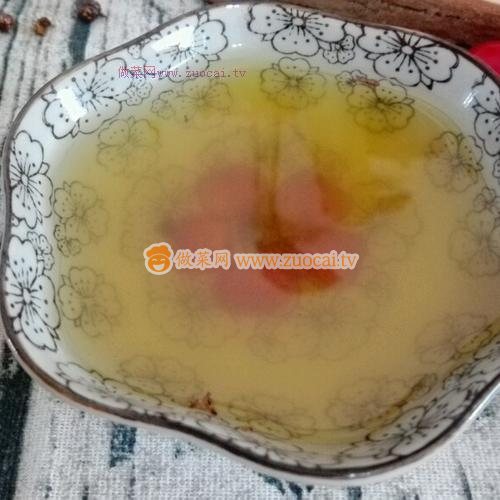 2.將開水倒入麻椒中浸泡一分鐘。水量以沒過麻椒為宜。