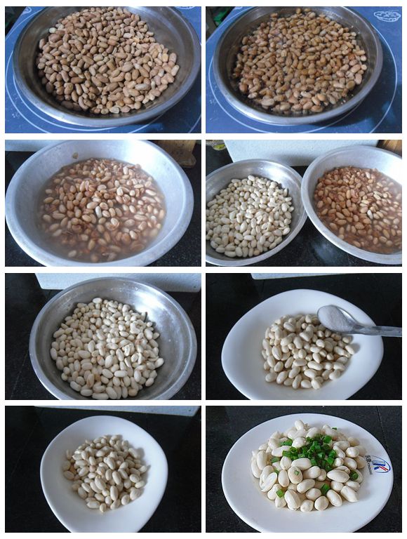 3、把浸泡好的花生米去皮。