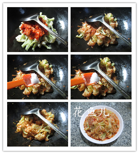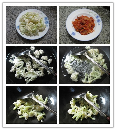 (2)燒鍋倒油燒熱,下入焯好的花菜翻炒一下。