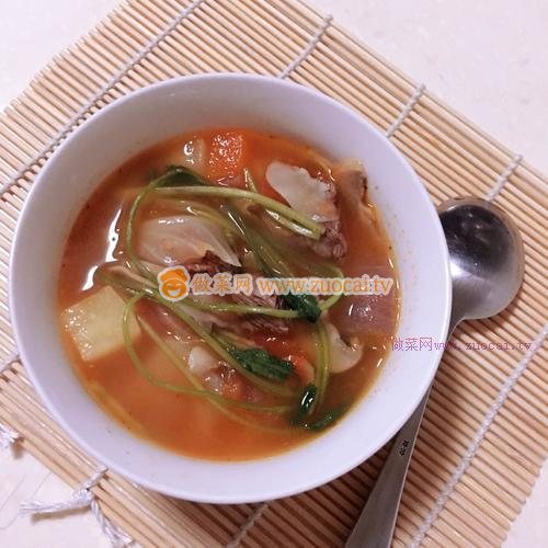 5.所有食材放入鍋中后,開中火繼續(xù)煲10分鐘,加入適量的鹽、雞精后即可出鍋……