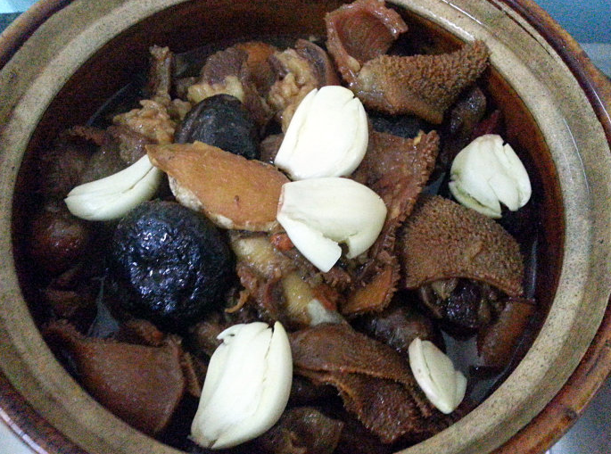 待氣閥掉下即可食用,可根據(jù)需要的量轉(zhuǎn)入沙煲并加入蒜頭。煲煮一會