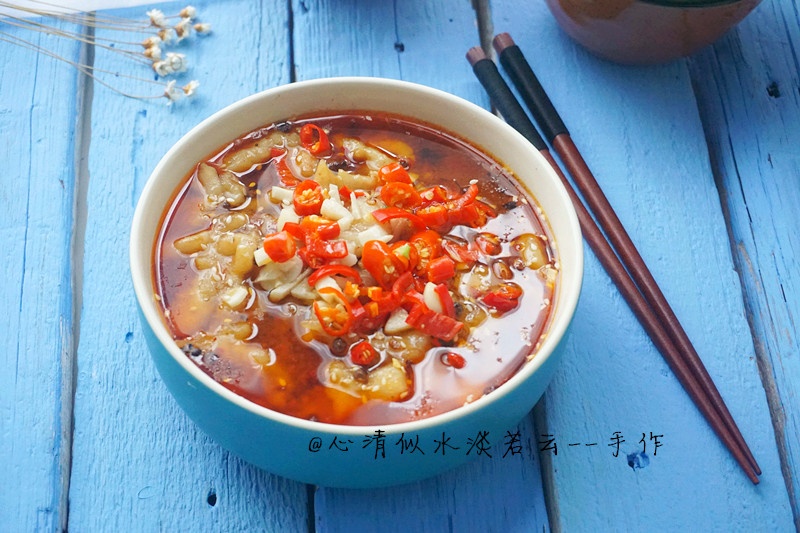 配料:尖椒,自制火鍋底料,大蒜末,姜末,鹽,胡椒粉,料酒,淀粉,