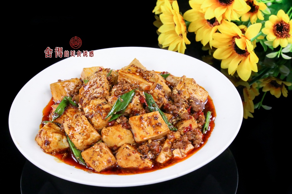 麻婆豆腐是四川省漢族傳統(tǒng)名菜之一,屬于川菜系。主要原料為配料和豆腐,材料主要有豆腐、牛肉末(也可以用豬肉)、辣椒和花椒等。麻來自花椒,辣來自辣椒,這道菜突出了川菜"麻辣"的特點。