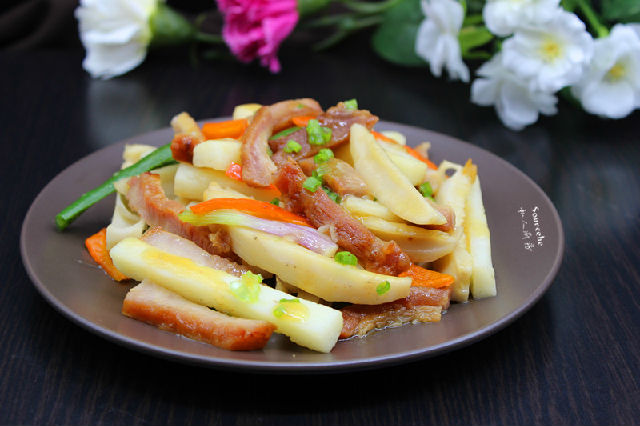 1.主食材:山藥300克、蓮藕300克、叉燒150克