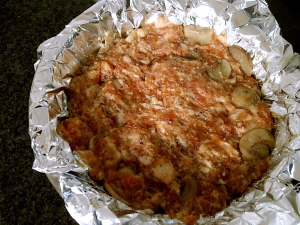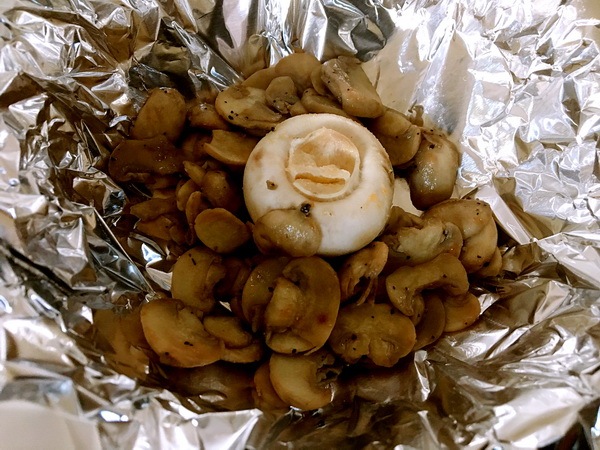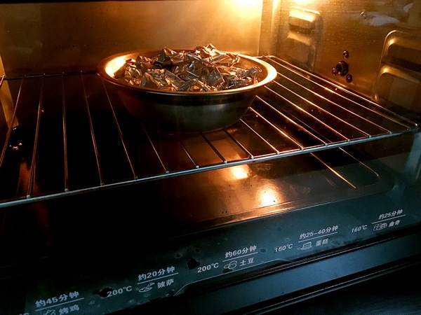 拿扣碗,鋪錫紙,先放另干煸蘑菇1/2