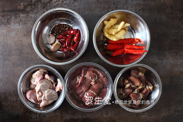 主料:雞心、雞胗和雞肝各100克