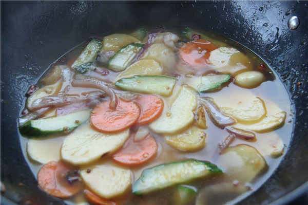 6、倒入水至淹沒(méi),燜至7成熟即可
