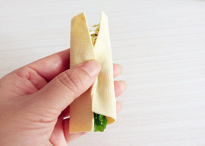 食材:精肉(最好選自里脊肉)、豆腐皮、黃瓜、黃豆醬、蔥、香菜、苦菊、花生油、蘋(píng)果醋、玉米淀粉